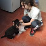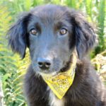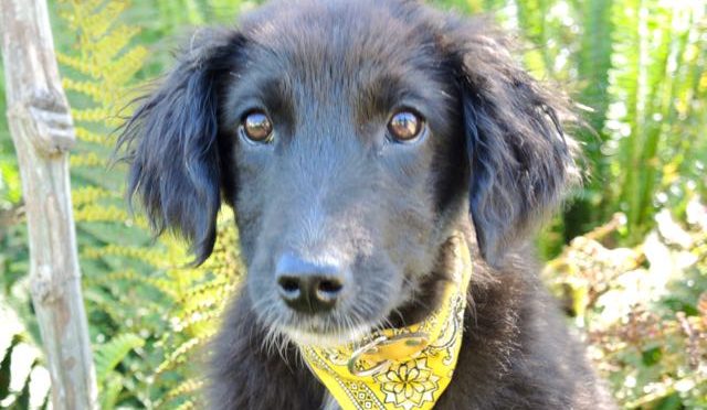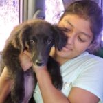 She is four months old and an unknown mix of breeds. She has a long snout and longish, silky soft black fur. She is a very friendly, people oriented pup. She is outgoing with the dogs, and plays hard with the bigger pups.