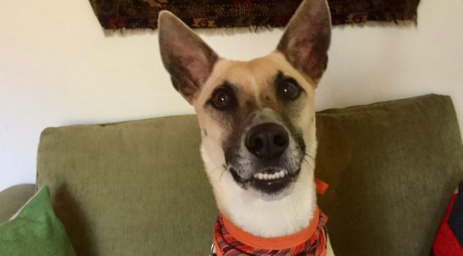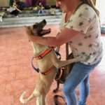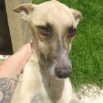 Daisy has filled out and is now a sleek, beautiful and very loving dog. She is now up at the rescue and beginning training and doing extremely well. She is very smart, food motivated, and extremely affectionate and friendly. She walks beautifully on leash, is unfazed by hustle and bustle in town, and loves people. She gets on well with other dogs, rides great in the car, and is pretty much a dream dog.