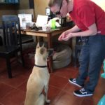 Daisy loves people, and is great with everyone, including kids. She is calm, gentle, and easy-going. She would do beset in a home without cats, as she does like to chase them.