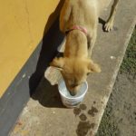 Nina had a collar on, but no one claimed her. She is about 5 months old, probably a Lab mix. She is sweet and very attached to the people she knows. She adores her foster dog-buddies Mango and Bruno and Chica. She is still quite nervous around other dogs until she gets to know them.