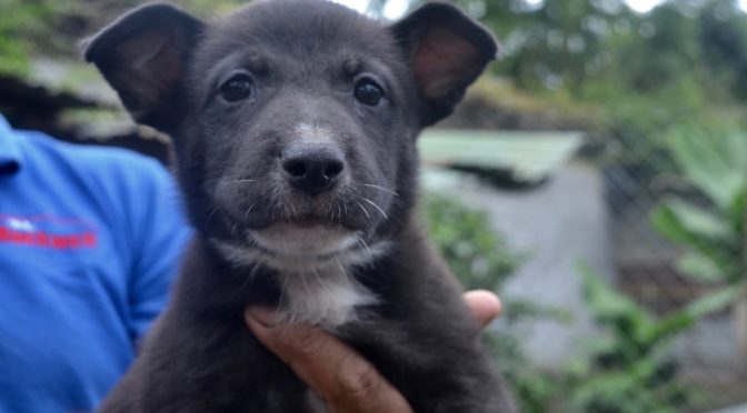 This is one of six puppies who were rescued along with their mother from Escuintla. The mother was very ill and could not swallow any food. Rescuer Francesca took her to her veterinarian and under sedation he found that she had a splintered chicken bone caught in her throat which prevented her from swallowing. Subsequently, they discovered that she has difficulty chewing due to an old, poorly healed fractured jaw.