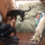 They are now about two and a half months old and ready for foster and furever homes. Misha is smaller than her brothers and has a smooth coat. She and Dewey likely had a different father. She is friendly, outgoing and a fun and playful puppy.