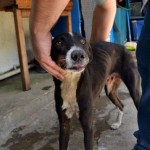 Alice was sick with an upper respiratory infection, in pain from severe mastitis, and coming into heat again. Dr. Calderon spayed her, treated her mastitis and respiratory infection with a course of antibiotics, and boarded her until she was better and we had space.