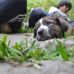 Our student volunteers carry on with the learning process every Saturday morning, luring the pups, playing with them and handling them. They are exposed to healthy, slightly older puppies and to tolerant adult dogs and are growing into friendly, social and playful puppies. They are being fostered by the fabulous Kristin Bush and live in a stimulating and safe environment with her and her adult dog Theo.