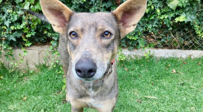 Asha is a really wonderful young dog. She is very pretty, with a salt-and pepper brownish grey coat. She is petit and a perfect size at about 35 lbs. She is very friendly and affectionate, without being pushy. She is smart and food motivated and excelling at her training.