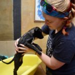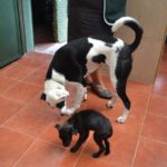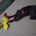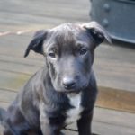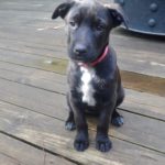 Babe is now about 4 months old, healthy, sweet, and playful. She loves people-loves to cuddle and loves to play. She is great with other dogs and puppies, and is okay with cats, although a little fearful of them. She is a sturdily build puppy and looks like she will be smaller to mid-sized. She has a wrinkly face and double chin, making her look like she has some Shar Pei in her.