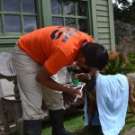 Babo now roams the property at will, and has learned to hunt avocados from the other grey muzzles. He is a sweet, quiet, gentle old gentleman. We are smitten! Dr. Calderon believes that he has some Collie in him, and that he is about 12 years old. He has settled in with the porch dogs beautifully and seems very content with them.