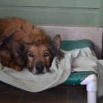 Friends Tessa and Gerson brought him in as he was having such a hard time on his own. He could barely walk and frequently urinated on himself as he couldn’t stand up. He appeared very painful, and when he did walk his gait was uneven and very week. We brought him in and had a full veterinary workup done on him, blood work taken, was tested for heartworm (negative!), had him neutered neutered, had a series of x-rays taken of his hips and lower back, and had a dental with extractions.