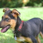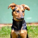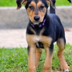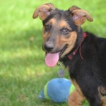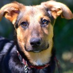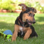 Bam Bam is a darling puppy, friendly, outgoing, playful and smart. He plays well with other dogs and puppies. He is being clicker trained and has already learned many basic behaviors including “sit”, “down”, a hand target, and to walk on a leash. He has a great recall and is learning to sleep in a crate.