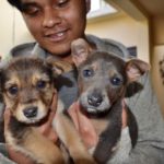 We took this litter as they were very young and not yet fearful of people. Additionally, two of the puppies had severe eye problems, and it seemed likely that they would each lose at least one eye.