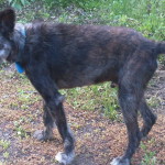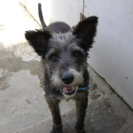 We received Benji on August 7, 2011. He is a middle aged, neutered, mid-sized grey terrier cross. He had been neutered. He had severe skin problems from a flea bite allergy, and was practically bald on the back half of his body. He is missing a lot of teeth.