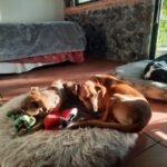 We have taken most of their dogs to sterilize and vaccinate them and then return them. We have sterilized and returned 7 or 8 so far Billy was one of them, along with his sister Jean. We picked them up at about 6 months of age, after worming them, treating them for mange, and vaccinating them over the previous months. When sterilized, we released them back in the area they lived in with their “family”, but unfortunately, Billy had taken to staying on the dangerous curve in the road that passes the aldea. He had zero traffic smarts and was going to be hit by a car. The family was uninterested in any potential solution to keep him from roaming, We couldn’t bear to find him injured or dead from being struck by a car, so we picked him and his sister back up; that is the Reader’s Digest Condensed version of how Billy came to be available for adoption with us.