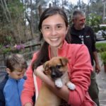 She loves her puppy brothers and other puppy friends, has been around all sorts of adult dogs, and around many, many people. She loves people, both adult and children. She does fine with the two cats in her foster home.