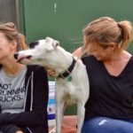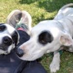He gets along with most other dogs, especially once he has gotten to know them. But he is much more interested in being with his people than with other dogs. CJ he does occasionally display some mild “person guarding” in the form of a growl toward other unknown dogs who get close when he is near his people, and doesn’t really want to share his favorite people’s laps with dogs he doesn’t know and like. He just warns the strange dogs off with a short growl.