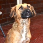Claire is about a year old, perhaps a little younger. She appears to have some retriever in her. She is very affectionate and connected. She is not anxious, but wants to be near you. She is smart and food motivated, and is learning her obedience behaviours very quickly. She walks beautifully both on and off leash.