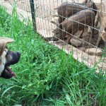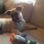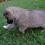 Cody and his sister Piper were born to a feral female who stays near to and is fed by a very poor family in San Juan Gascon, a community just outside of Antigua. They were born on about December 10, 2014. The pups’ mother was abandoned by her previous owners and the human family has tried to care for her as best as they can for several years. The mother is a large dog, golden yellow with a mid-length coat. She appears to be part German Shepherd, and her estimated weight is between 50 and 60 lbs. Unfortunately, the mother is extremely wild, very smart, and we have been unable to catch her. Even after ingesting massive doses of tranquilizer dosed in food, she still managed to evade us.This is the fourth litter of puppies by this female we have helped with. The family watched over the puppies and handled the puppies and played with them as much as possible to make sure that they did not become feral like their mother. The mother dog allowed this, but moved the puppies away from the house each time.