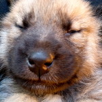 We took the puppies in on January 9th at about one month of age. The puppies were in quite good condition on intake. They had a heavy parasite (worm) load, and had very scabby skin due to multiple flea bites, but were well nourished and otherwise healthy.