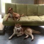 Cusca is young-not more than a year and a half old. She must have some kind of husky or Akita in her as her tail is tightly curled and she carries it over her back. She is very un-Husky -like in that she is very focused and affectionate with people.
