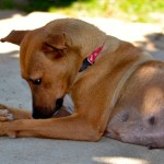 We are told that this young dog belonged to a woman in San Pedro las Huertas, a town near Antigua. The woman died a while ago, and the family locked up the house and left her dog to live or die on her own. Cusca of course came into heat and delivered her puppies in the only safe place she knew-the abandoned house.