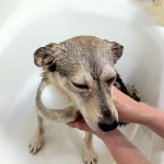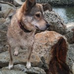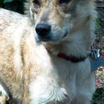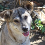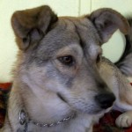 Dakota is a small brownish/greyish dog with black tips on her fur. She looks like a mini coyote. She was quite thin, and her coat was dry and brittle. She was very dirty and had what appeared to be chronic ear issues. She is quite young; perhaps 2 years old.