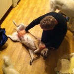 December, 2012 Update-Dakota loves her dog friends. She plays with everyone, and plays hard. She occasionally barks at other dogs passing on the street while riding in the car. She settles quickly once told “no”. She can be a little reactive on walks on the street (when with other Puppy Palace dogs), when she sees other dogs walking. This behaviour is much reduced when she is walked by herself. We believe that this will extinguish when she is no longer in the Guatemala environment and encounters friendly, well socialized dogs instead of the unbalanced dogs she meets here. She is generally a friendly, happy, confident little dog. She is easy going and very sweet to everyone.