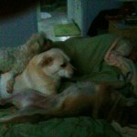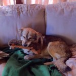 Dakota walked into the secondhand store in the front part of the Puppy Palace one afternoon probably lured by the “buffet” we offer to street dogs. She was a nursing mother and was VERY hungry. She followed Terry right into the back area and showed no signs of wanting to leave. So she stayed.