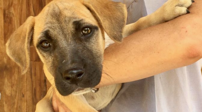 Dana was abandoned, tied in a bag and tethered to a tree outside one of our board member’s home one Saturday. We haven’t a clue who left her or when, really. She was terrified and very hungry and thirsty when we finally realized that a puppy was outside.