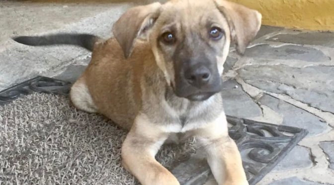 Dembe was rescued by Francesca. This little guy had been tied into a plastic bag with another sibling and tossed like garbage into a semi-abandoned coffee farm. A kind farm worker found them and saved them. The sibling was okay, but Dembe had a huge open wound on his back. Flies had laid eggs in it and he had maggots crawling around in the wound. The worker contacted Francesca as he thought the puppy would die.