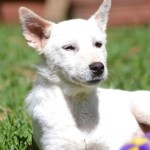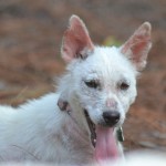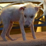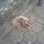 Dobby was found by good samaritans in a nearby town. They contacted us asking us to take the puppy, and when we had located a foster for the pup, the kind folks couldn’t find the sick puppy. The pup reappeared almost two weeks later, in even worse shape than before.
