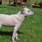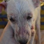 We received Dobby on November 24th, 2015. She was extremely malnourished, had two kinds of mange, two kinds of seborrhea, an overlying skin infection, major internal parasite infestation, and a severe kennel cough.
