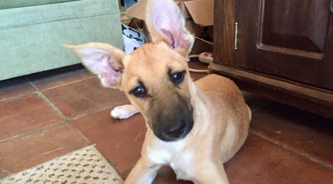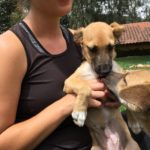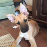 She is healthy, loves her puppy and big dog friends, and loves kids and people of all sizes and ages. Fenix has started her training with us. She is learning her sits, downs, and hand targets and she is a a smart and eager learner. She is sleeping in a crate at night.