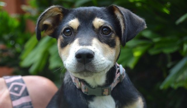 She is a sweet, very friendly and balanced puppy. She lives with children and six dogs, and has had lots of exposure to people and the rescue dogs. She is smart and affectionate and loves to share your bed.