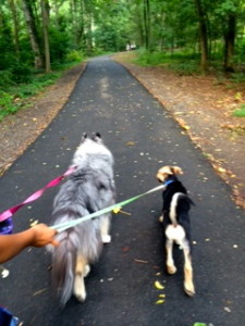 Scout and Pokaboo-first walk in new neighborhood