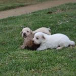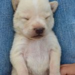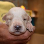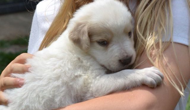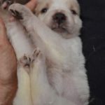 Gascon is a gorgeous creamy white and light tan pup. He is not available for adoption yet, as he is not yet weaned. He will be available mid July.