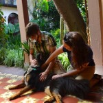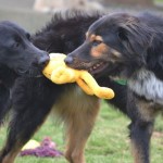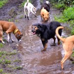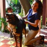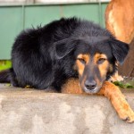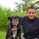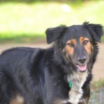 Guapo is a gorgeous Setter/Golden/Rottie mix (maybe). He was rescued by Paula Hillman after she found him abandoned and severely injured in a field. He had a shattered pelvis with a bone protruding, and was skeletally thin. She took him in and nursed him back to health, but after several months she decided that he was too much for her and asked us to take him. When we took Guapo in he was physically healed, but had many severe behavioral problems. He was extremely reactive toward joggers, bicyclists, and some other dogs. and had bitten several people.  He had severe food guarding issues. He leaked urine whenever he greeted you. Guapo has been a favorite dog at the Cerro since his arrival. He is very loving and affectionate, and gets along with all the other dogs. He is beautiful, loves to play and is great with children. He still has some leash reactivity and needs consistent work with adding food to his dish. Guapo’s obedience in lower distraction situations is excellent. He needs continued work in higher distraction areas. Guapo needs a lot of daily exercise to help him stay calm. He has moderately high anxiety and needs structure and calm entries and departures to keep him relaxed. He loves other dogs, and does well with most other dogs, but loves to be the center of attention, so would do well as an only dog. Guapo no longer triggers on joggers or cyclists. Just a gentle reminder to target your hand or look at you is enough to redirect him to make a good choice. He was adopted by Ben and Mary Florence in the summer of 2014, and we sent him on to New York City to join them when they moved.