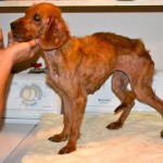 Heather was in truly appalling condition when volunteers Jason and Alison brought her to us. This little creature apparently had an owner, and yet still was starved and suffering from terrible mange.