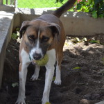 Joaquin loves to play fetch and is a great soccer player. He is calm and easy going in the house. He does get car sick, unfortunately. We have been taking him on shorter car rides for a long time now, and he has gotten much better. We make sure that he rides on an empty stomach and he can now do trips of 20 to 30 minutes in the front seat without getting sick. He is our co-pilot! Strangely, although he gets carsick he still loves the car!