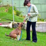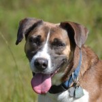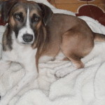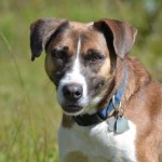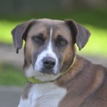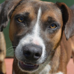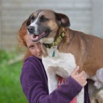 Joaquin is a stunningly beautiful brown and white short haired male, about a year and a half old. He is a wonderful dog with a great personality. He is athletic and strong, and loves to go for long walks or runs. He is great off leash and sticks right beside you. We call him our velcro dog! His recall is awesome, and his leash manners are great. He has been clicker trained and has excellent basic obedience He is very eager to learn and attuned to his trainer. He is great with people-all people, all ages. He loves children and would like to be a lap dog if at all possible! He is also very good with most dogs. He plays hard with his group of favourite buddies at the rescue. He doesn’t go out of his way to meet new dogs who come in. If one approaches him before they have had time together, Joaquin will growl and tell the dog to leave him alone. He always avoids conflict if possible.