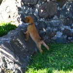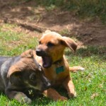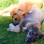 John and Jim were born to a litter of four puppies, but the mother dog accidentally killed two of her puppies by lying on them. The area they were born in was filled with rubble and dangerous holes, and when they were about two weeks old, John disappeared for a couple of days. Friends Tessa and Gerson had been visiting the mother dog, feeding her and checking on the puppies. They were heartbroken when they thought that a third puppy had been killed, but finally hearing its cries, they located John where he had fallen down a hole. Jim and John are the only two surviving puppies from their litter.