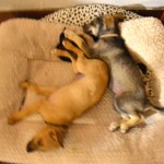 Not willing to take a chance at losing him, too, they decided to take both puppies home in foster. They kept the pups for a couple of weeks until we could receive them. Jim and John have since been fostered with Linda, one of our founders.