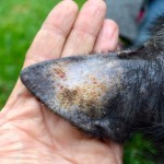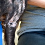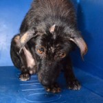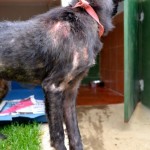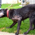 Kai was checked out by our vet, but aside from the usual parasite load  (both internal and external), malnutrition, and a severe skin infection, he seemed fine. We had him neutered and put him in quarantine after vaccinating him, and after 10 days he joined the “porch pack” and lived with the older dogs while recovering. He rejoined the younger dogs at the end of May, 2015.