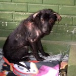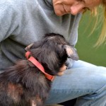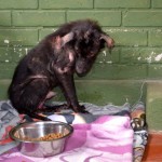 We spotted Kai a couple of weeks before he finally came in to the rescue, but couldn’t catch him. He was extremeley shy and fearful. But after a couple more weeks of trying to fill his belly, he was weak enough to finally catch. He had become a regular at our feeding station, and volunteer Tana Bailey managed to catch him (with quite a struggle) on March 4th, 2015.