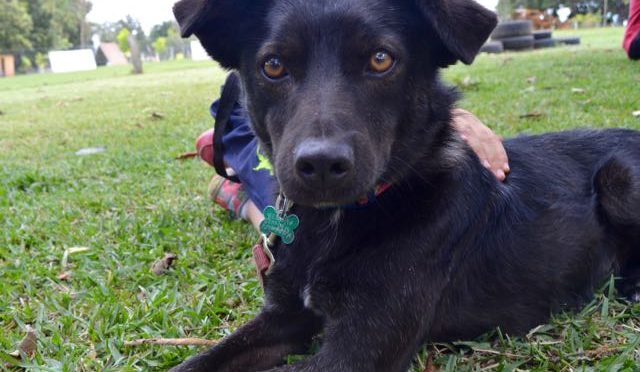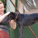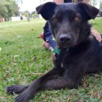Kai was very fearful and hand shy at first, but within a couple of days with us he warmed up and became a very affectionate, playful dog. He is feeling good now, and his skin is healed and his coat is grown back in thick, lush and shiny. He has put on weight and is doing very well with his training. Kai trusts us but even so if we grab at him quickly when he isn’t expecting it or he feels threatened, he panics and can become defensive. He calms quickly with voice reassurance. He can be nippy with new people when they come into the play area, so we recommend introducing him to new people when they come over.