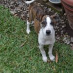 Katy is stunningly beautiful with variegated brown brindle stripes on her back and sides, and big splashes of white on her chest and legs. She is a lovely, gentle and sweet pup. Katy loves kids and people in general. She loves to play with toys and other puppies and dogs.