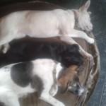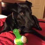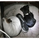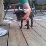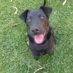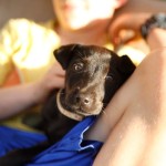 Kishi was found running alongside a busy road by a good samaritan who scooped the tiny, frightened puppy up and brought her to us. Kishi weighed a whopping 1.1 pounds, and was flea and lice infested. We treated her parasites, and wonderful UPA volunteer Carla and her husband Thomas offered to foster this tiny little bundle of black fuzz. Kishi thrived under their loving care, growing up with cat-brother Fernando and dog-sister Nani. She proved to be friendly, fearless, and incredibly fun. Kishi has never met a dog or cat or person she didn’t like. She was quickly adopted by a wonderful woman in the San Francisco area and lives with a black cat-sister named Wasabi. She is loved, spoiled, and very, very happy.
