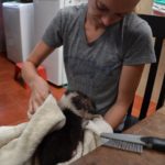 Of course all the children were instantly in love with this little thing, and Mama Nancy and Emily Osbourne made a call to us…incoming. So little Layla spent a warm night safe and sound with Emily, who will help foster this little one. We estimated her age at about 2 months, but she was very malnourished so it was hard to tell for sure. She was filthy beyond words, and was treated for sarcoptic mange and all manner of other parasites.