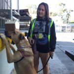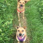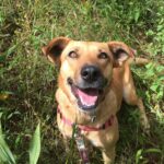 Leia is great with all the dogs at the rescue, except at dinner time. She will guard her food from other dog, and will try to steal theirs if she can, She is fine with people coming near her food. She is gentle and sweet with people. She is doing well with her basic training. She walks well on leash in town, but tends to pull when out in exciting critterlandia, so we use a front attach harness with her. Leia rides well in the car, is fully house trained, and shows no reactivity toward other dogs when on or off leash (she really isn’t very interested in other dogs at all. She does seem to prefer male dogs to females).