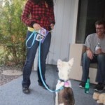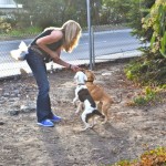 Alison and Jason took the pup in and kept her overnight, and we picked her up the next morning. She was starving but reluctant to eat due to a very bad gum infection. We got her bathed and treated her parasites, put her on a course of antibiotic and fed her soft food.