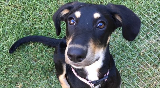 Little Bug has been fostered by board member Keri Peyton who has literally performed miracles with this pup. She is now fully healed and healthy. She has a short, glossy coat with no signs of the terrible burns she suffered. She has grown up with a large group of dogs, lots of social time with other puppies and kids and people in general. She is a friendly, outgoing and people-loving puppy and has been supremely well socialized. She is a pretty chill puppy most of the time, so is very easy to live with.
