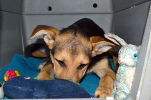 Scout in crate at airport